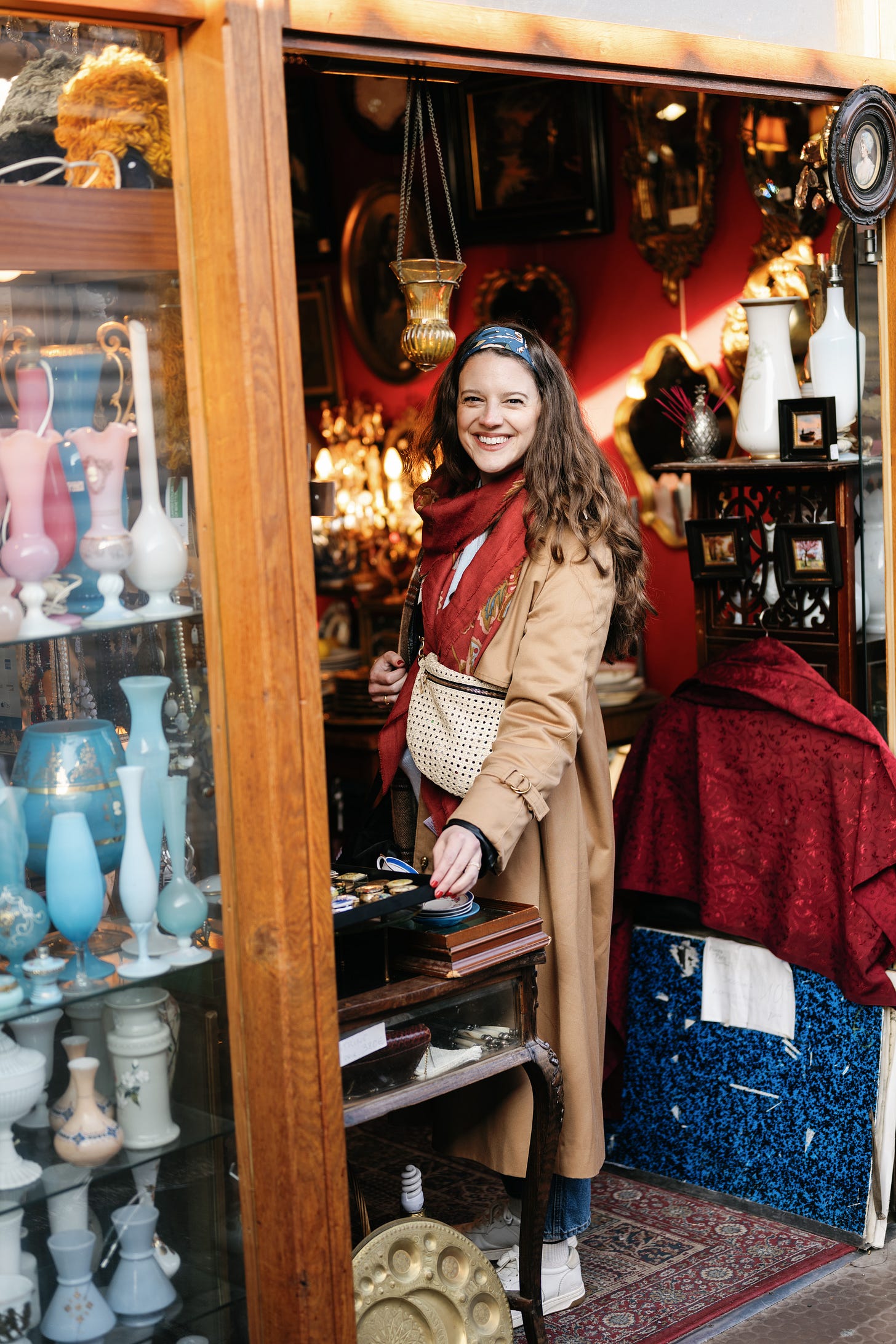 When I first moved to Chicago fresh out of college, my mom and I bought a little side table (which went on to serve as my makeup vanity throughout my twenties!) and a few small decor pieces at Praha. I still have all of them! That day, I learned that the owner, Todd, started his shop by traveling to Prague, filling a shipping container with antiques, and bringing them back to sell. I remember thinking, “Wow—THAT is the dream job.”